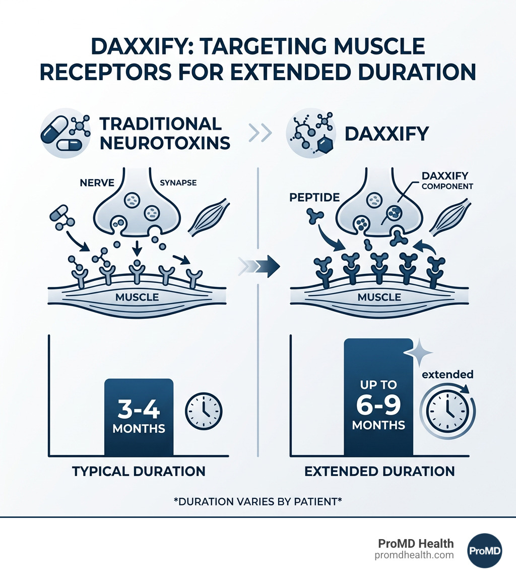 While traditional neurotoxins like Botox usually last 3 to 4 months, Daxxify is designed to last a median of 6 months, with potential for up to 9 months in some patients. This allows for a biannual maintenance schedule. You can verify this longevity data through the Daxxify Practice Finder which highlights the clinical success of this peptide-powered formula.