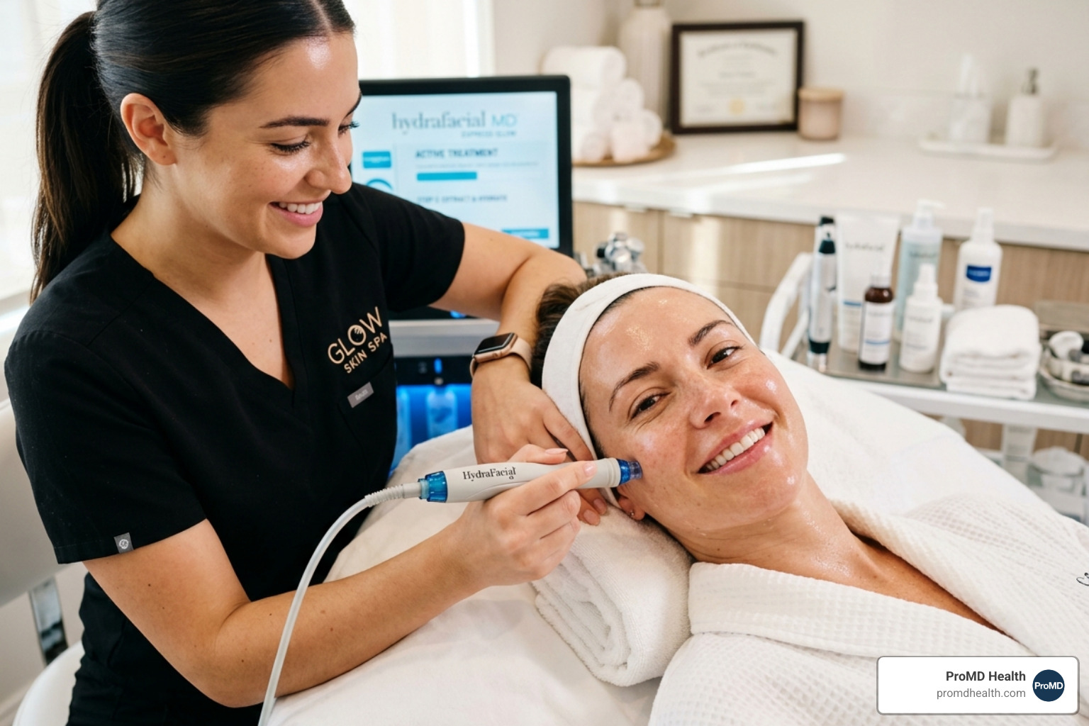 Not all providers are created equal. When looking for a clinic, you want to ensure they are using the authentic HydraFacial™ device and medical-grade serums. At ProMD Health, we pride ourselves on our clinical environment and the expertise of our licensed medical estheticians.