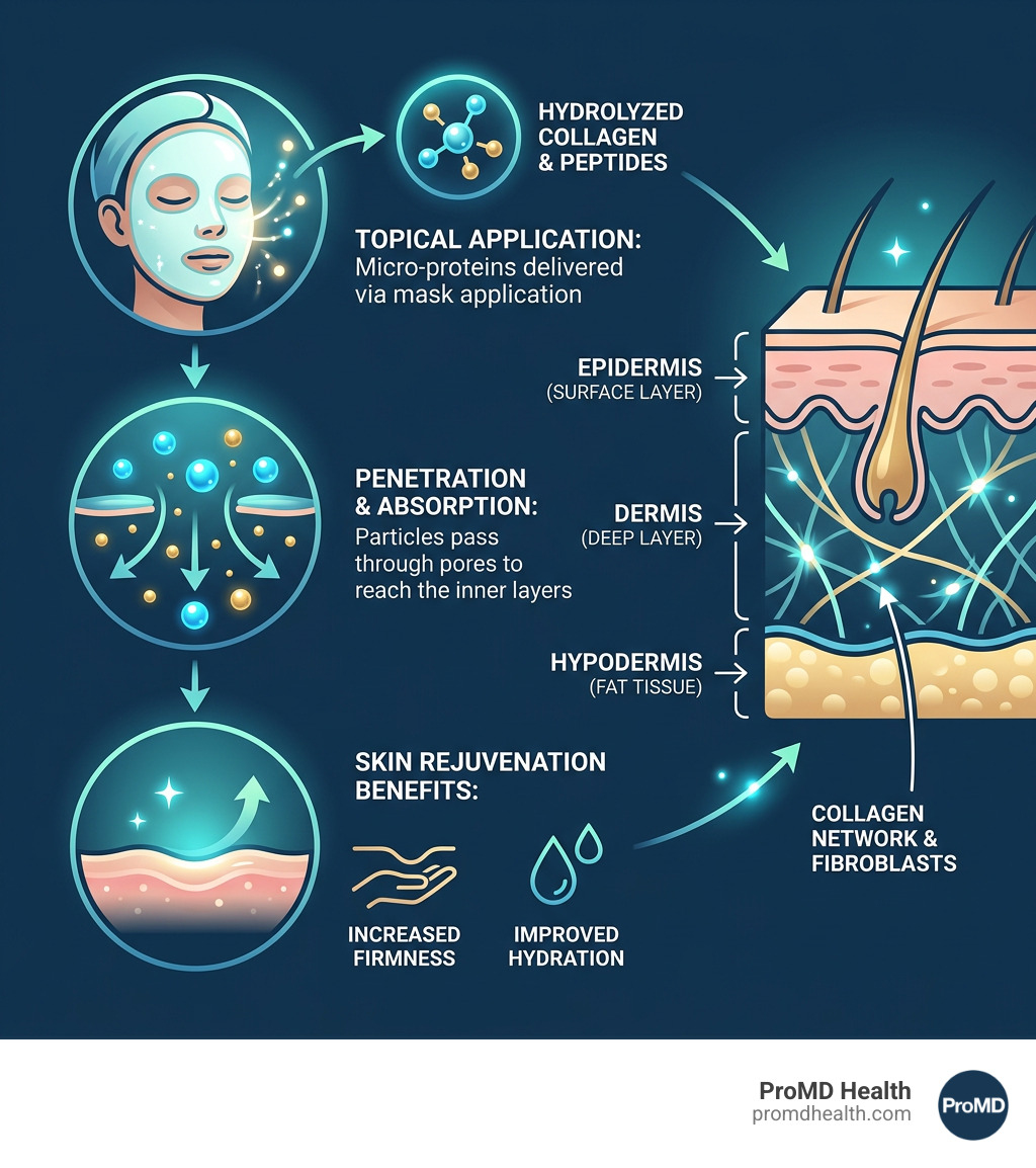 Infographic showing how collagen proteins penetrate the dermis layers for skin rejuvenation - collagen mask hutto, tx