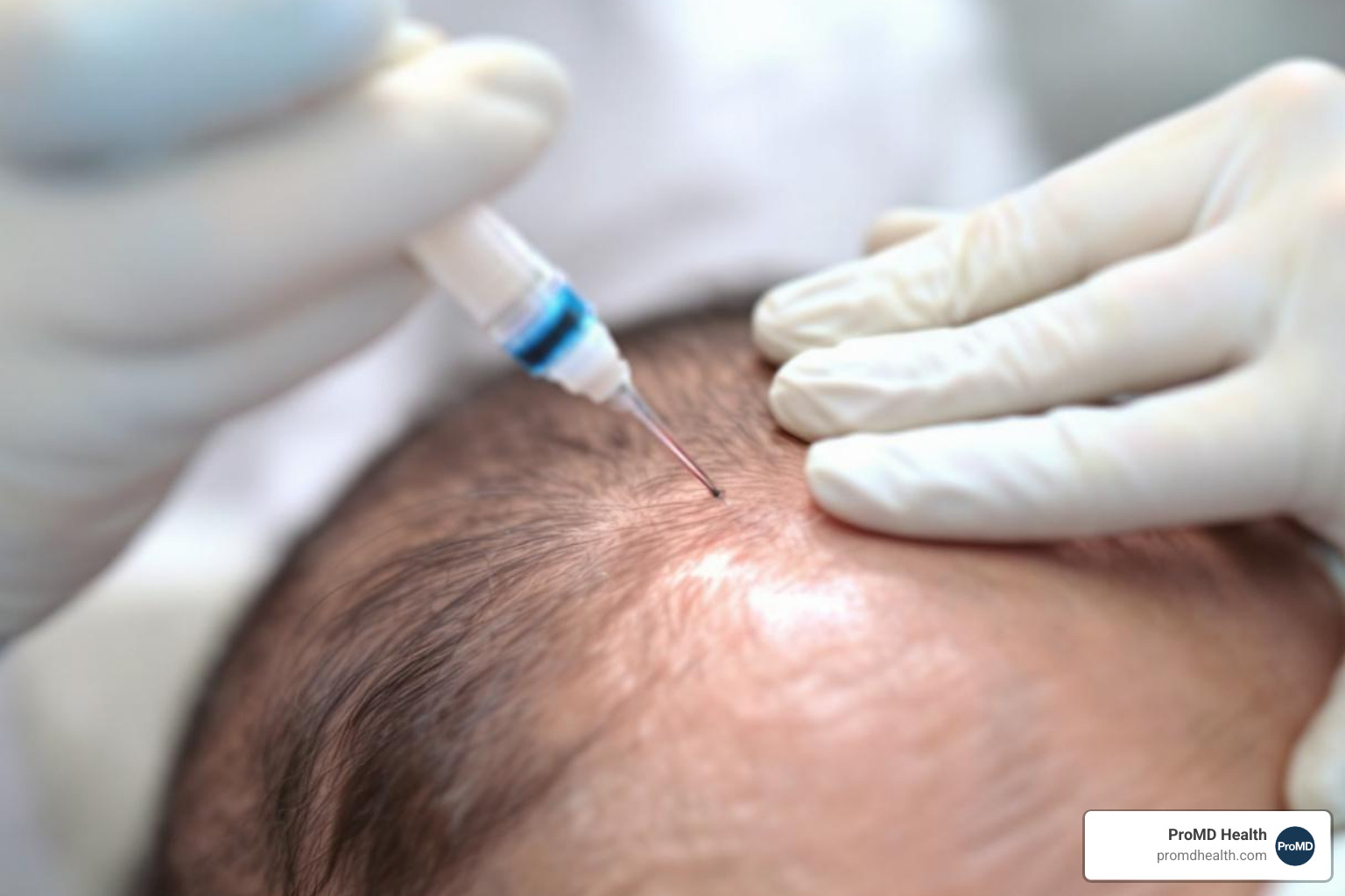 • Corticosteroid Injections: Highly effective for alopecia areata, these injections are administered directly into bald spots to reduce inflammation and suppress the immune attack on follicles. Over 80% of patients see at least partial regrowth within 12 weeks.