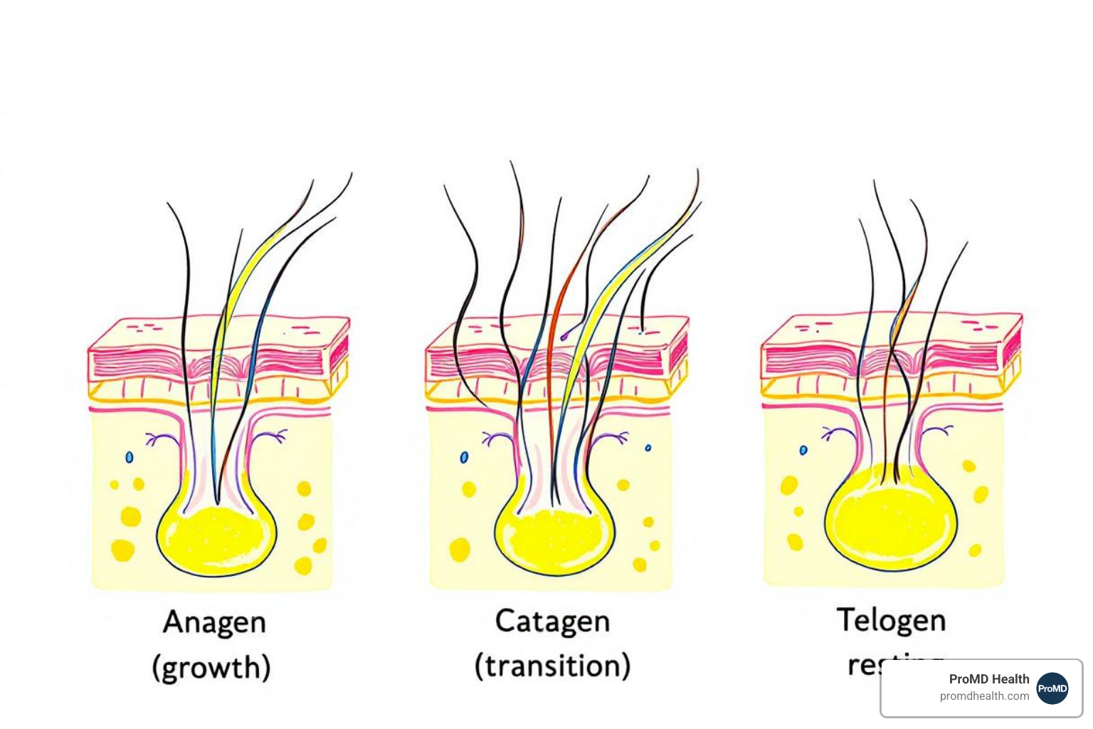 - Catagen (Transition) Phase: A short phase where hair growth stops.