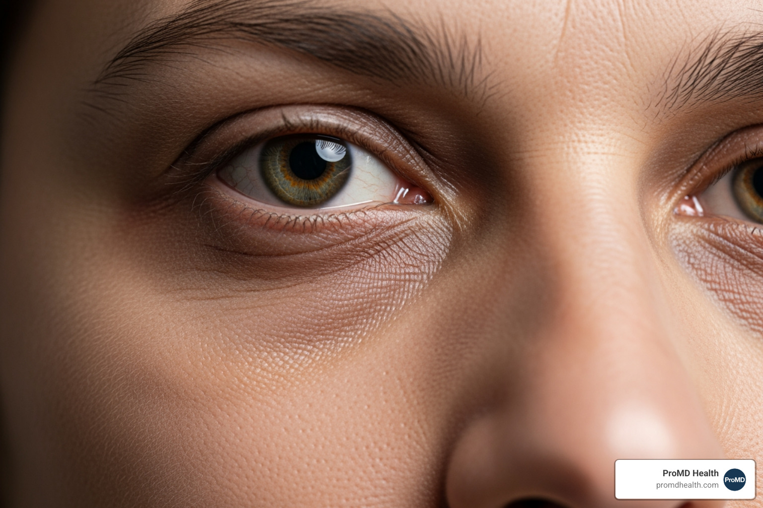 That delicate groove running between your lower eyelid and upper cheek is your tear trough. When it becomes more pronounced, it creates shadows that look like dark circles, even when you’re well-rested. These shadows are optical illusions caused by hollowing and volume loss, creating a sunken appearance known as a tear trough deformity.