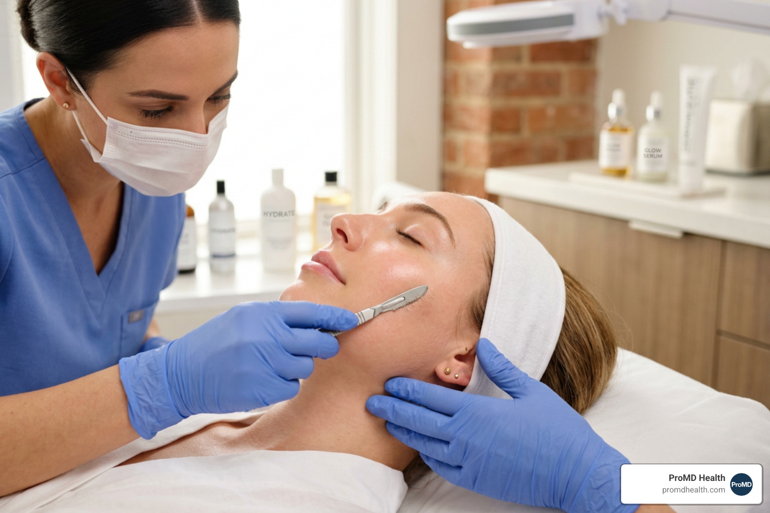 At ProMD Health, our Dermaplaning Services are designed to be both efficient and relaxing. A typical session can last anywhere from 20 to 60 minutes, depending on whether you choose a quick “express” exfoliation or a more comprehensive facial experience. One of the best parts? There is absolutely zero downtime. You can walk out of our office and head straight to lunch or back to work with a glow that wasn’t there an hour ago. If you are new to professional skincare, checking out the essential guide to facials can help you see how this fits into a broader wellness plan.